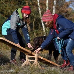Für die Teams, bestehend aus je einem Hund und einem Hundeführer, gab es in einem Parcours einige Aufgaben zu bestehen.