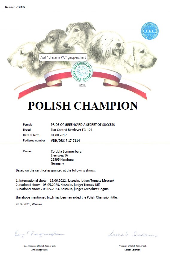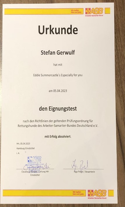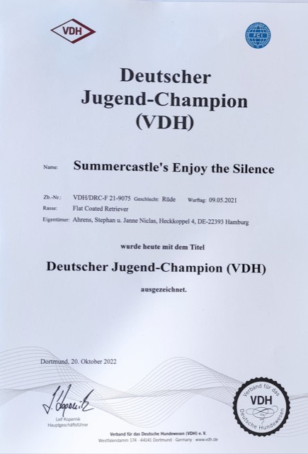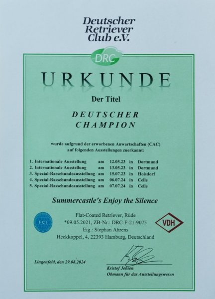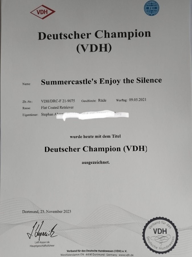 Silas alle Voraussetzungen für den Deutschen Champion erfüllt. Die Urkunde ist inzwischen