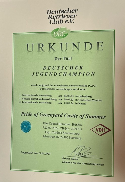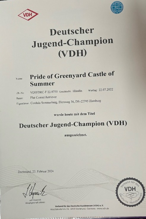 damit alle Voraussetzungen für den Deutschen Champion VDH erfüllt |