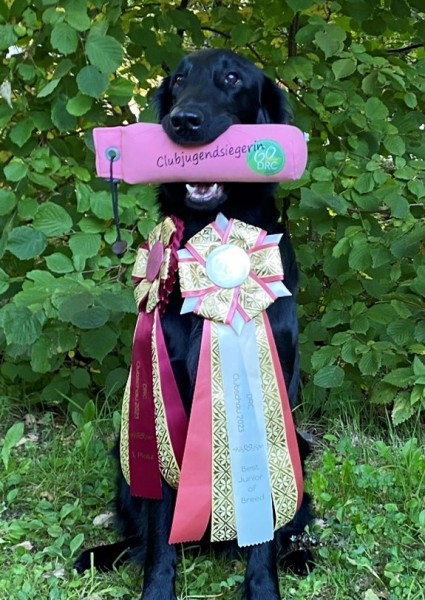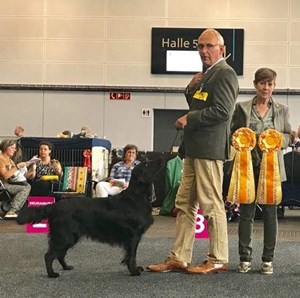In Diedersdorf hatte Stella ihr Showdebut und erreichte als jüngste Hündin in der Jugendklasse mit gerade mal 9 Monaten und 4 Tagen ein V2 Res JCAC (9 Starter).