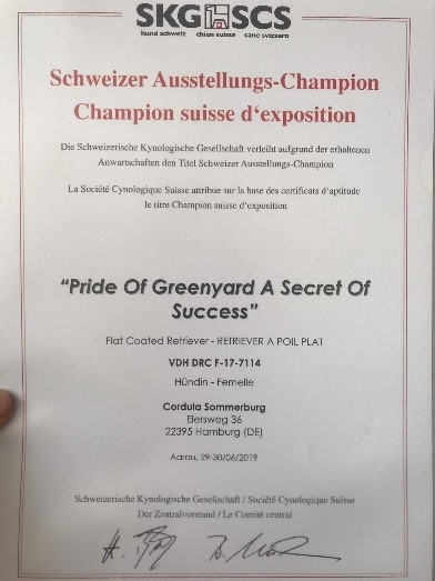 Stella darf sich nach drei Ausstellungen in Aarau, auf denen sie jeweils die Gebrauchshundeklasse gewinnen konnte jetzt Schweizer Ausstellungschampion nennen!