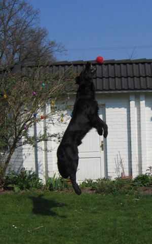 Jester bedeutet Spaßvogel oder Narr - und so hat er sich auch immer aufgeführt. Das VIP in seinem Namen hat er sein Leben lang etwas zu ernst genommen. Wenn er etwas wollte, dann wollte er das und ließ sich nur sehr schwerlich davon abhalten, es zu tun. Das machte ihn manchmal anstrengend, zumal er auch jede Möglichkeit nutzte abzuhauen, wenn er eine gut duftende Hündin irgendwo im Norden Hamburgs vermutete..... Was ihn absolut auszeichnete, war seine totale Verträglichkeit mit anderen Rüden. Für Jester war jeder andere Hund ein Spielkamerad und für jeden Welpen legte er sich hin und ließ ihn auf sich rumturnen.